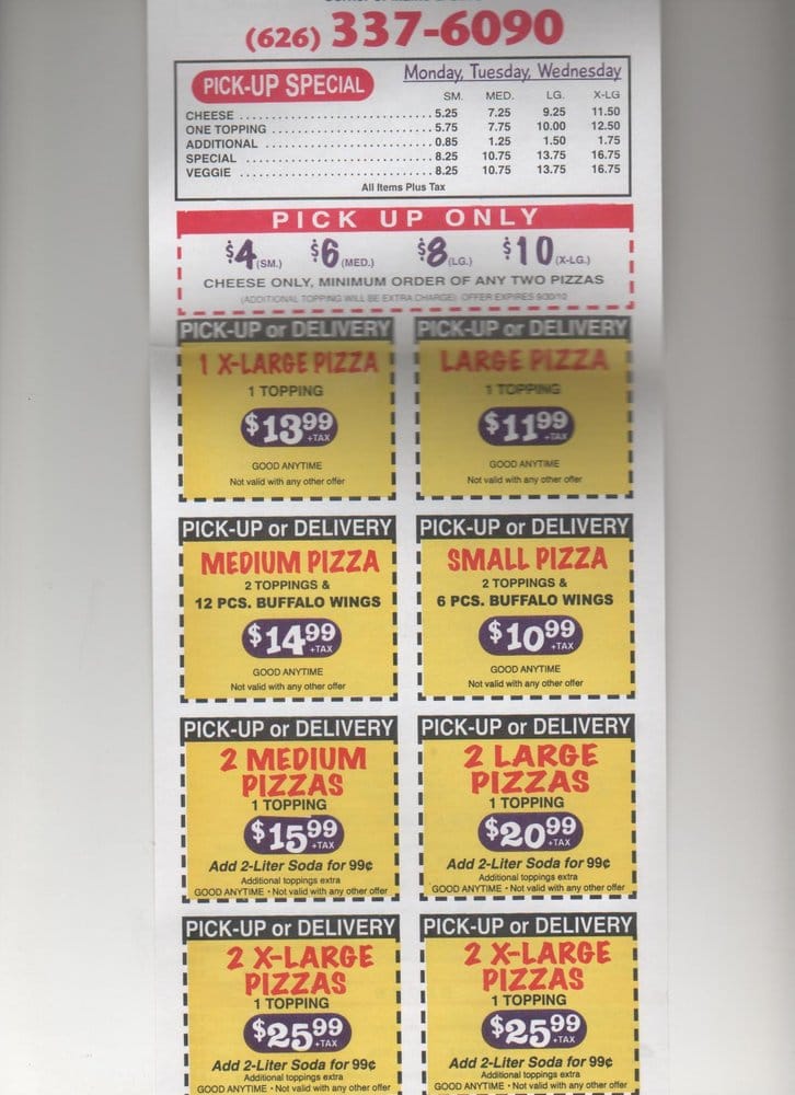 Introducing the menu at Baldwin Park Pizza, located at 4744 Maine Ave Baldwin Park, CA 91706, where you can indulge in delicious pizza creations. This casual dining spot offers a variety of options for all pizza lovers. From classic favorites to unique toppings, there's something for everyone. The restaurant provides an array of amenities such as delivery, takeout, reservations, and wheelchair accessibility. You can also enjoy outdoor seating, free Wi-Fi, and waiter service. Customers rave about the flavorful pizzas and good-sized portions for the price. While some wish for Chicago-style pizza, the overall consensus is positive, with many praising the tasty wings and friendly service. Come experience the nostalgia and great taste of Baldwin Park Pizza!